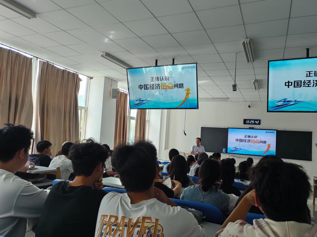 10月16日下午,校党委副书记李兴教授以“正确认识中国经济热点问题”为题,在力行楼2-11教室为2025级袁家玑学生讲授形势与政策课。