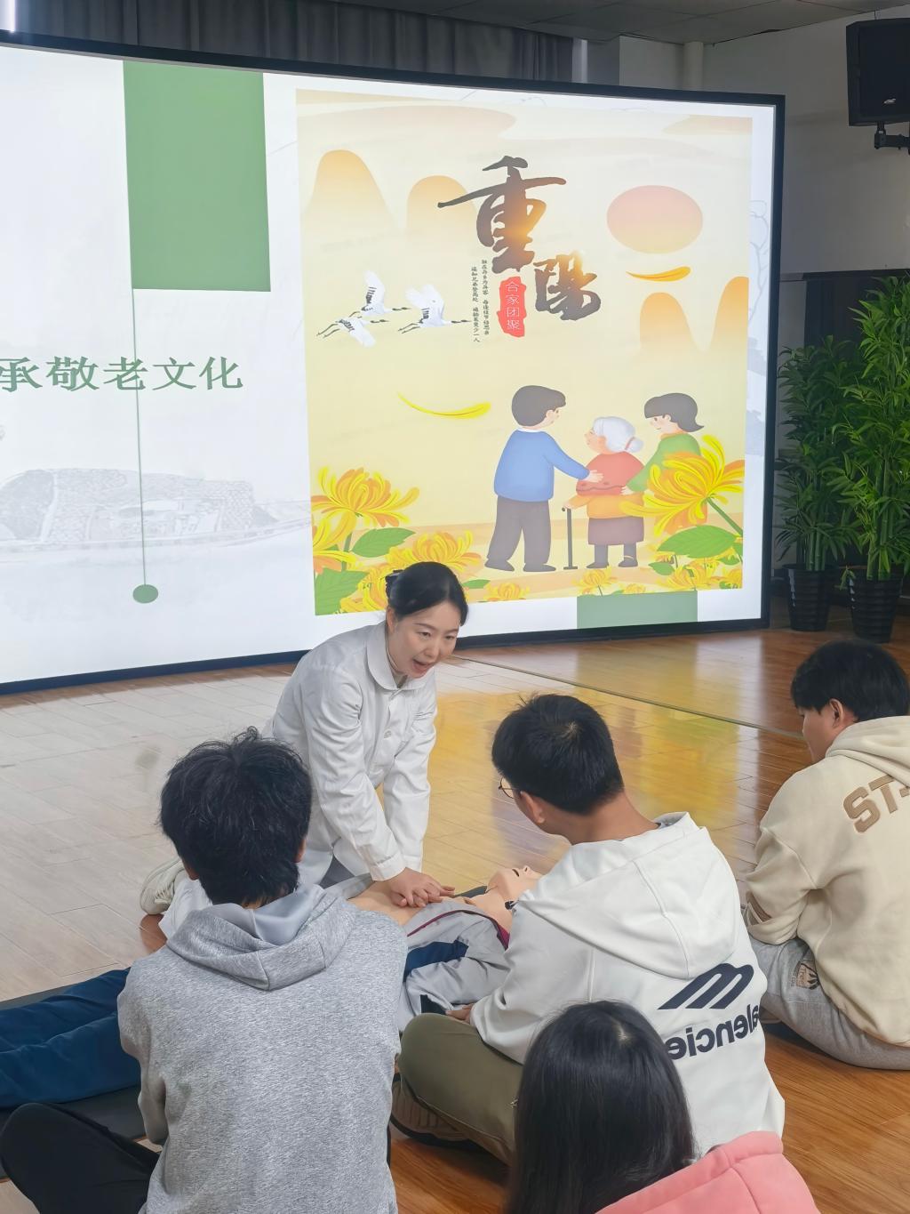 活动伊始,郑佳文老师围绕重阳节这一主题,从重阳节的由来、文化内涵、敬老等为切入,深入解读其蕴含的祈福感恩、劳动价值等教育意义。她强调要发扬中华民族孝亲敬老的传统美德,引导同学们从中国传统节日中汲取精神力量,不断增强对中华优秀传统文化的认同感与文化自信。