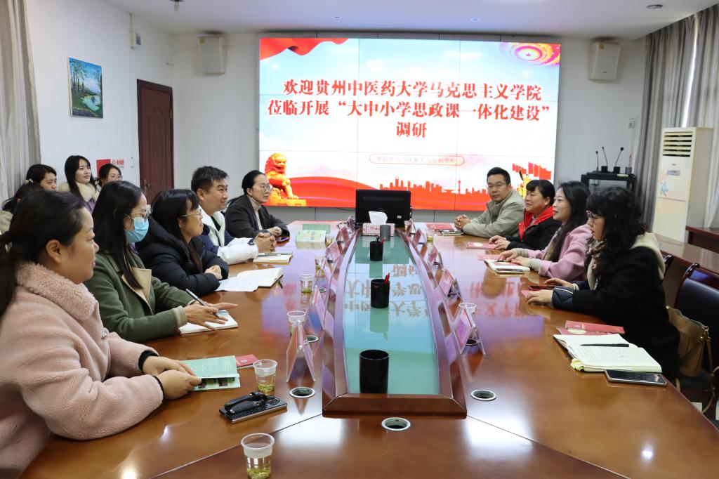 为进一步推动大中小学思政课一体化建设走深走实,11月27日上午,yl8cc永利官网党总支书记韦伟率学院思政课骨干教师一行5人赴乌当区新天九年制学校开展大中小学思政课一体化建设调研座谈。调研会由新天九年制学校校长张鼎主持。