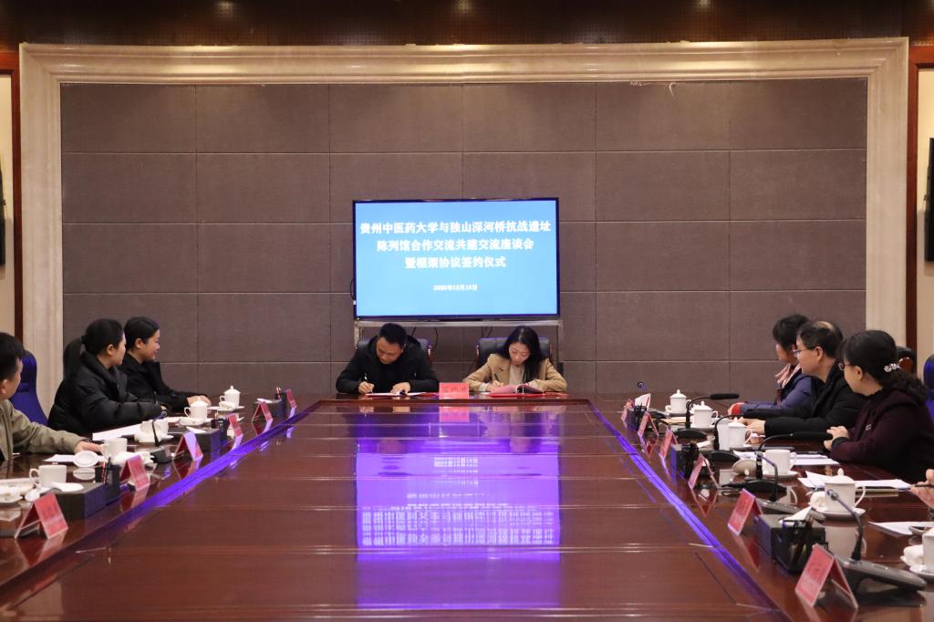 为深化红色资源与思政教育融合,构建校馆协同育人新格局,12月18日下午,永利官网校党委副书记明雪梅带队赴独山深河桥抗战遗址陈列馆开展合作共建交流座谈会暨框架协议签约仪式,双方就共建“大思政课”实践教学基地、深化红色教育与中医药文化融合等事宜达成共识。永利官网党委副书记明雪梅,独山县委常委、县委宣传部部长、县委统战部部长李崇骁出席会议。