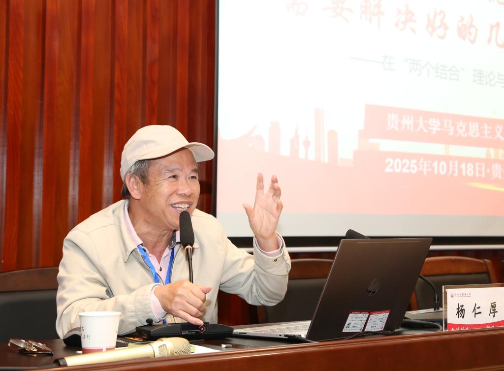 原贵州大学yl8cc永利官网党委书记,贵州省科社暨政治学会学术委员会主席,三级教授杨仁厚作主旨报